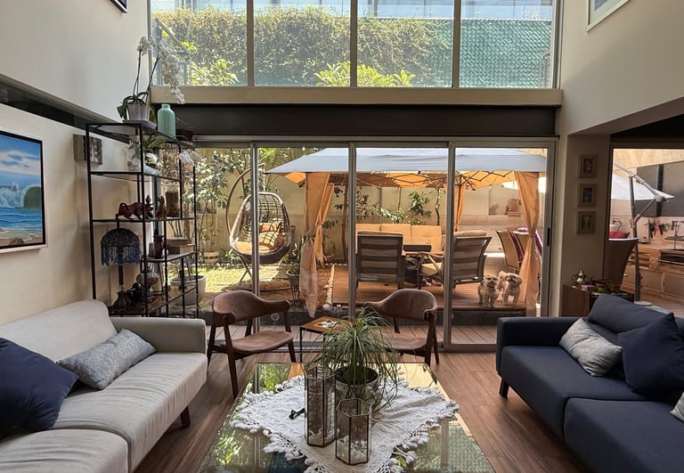 210 m² interiores + 60 m² de jardín privado. Renta: $85,000 MXN.